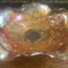 A Marigold footed carnival glass bowl thistle pattern to underside 220 x 80