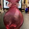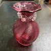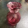 A Cranberry and clear swirl glass vase