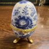 A blue and white decorative Russian porcelain egg trinket box 100mm