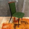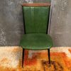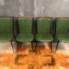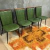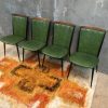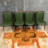 A set of four retro olive green mid century dining chairs with teak cresting rail