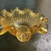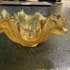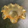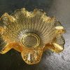 A small Victorian lattice filigree crimped amber glass dish