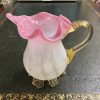 A Victorian opalescent cranberry art glass jug AF Chipped foot