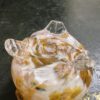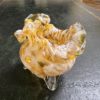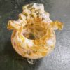 A Victorian amber and white spatter glass frill necked squat vase AF small chip to foot