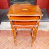 An Edwardian mahogany inlaid nest of three tables with shaped top raised on turned legs and stretchers.