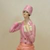 Art Deco Hand Painted Half Doll pin Cushion & Legs, With A Pink & Salmon Lace Dress.