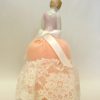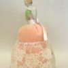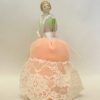 Art Deco Hand Painted Half Doll Pin Cushion, With A pink, Green & Lace Dress.