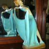 Art Deco Figurine in the form of a “dancing lady” sweeping her blue gown. Hand painted this vintage American plaster figurine is in very good condition.