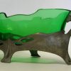 Art Nouveau “Osiris” pewter centre piece with bottle green glass liner.