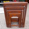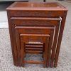 An early 20th century Chinese carved hardwood nest of four occasional tables, largest 51cm