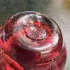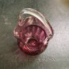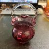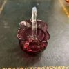Cranberry basket vase with clear glass handle