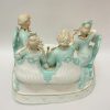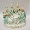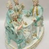 French bisque hand crafted and painted nodding head group figurine playing a game of cards, with superb detail to their faces, outfits and furniture, decorated with 22ct gold gilt.