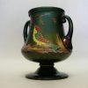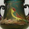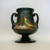 French Two Handle Loving Cup, Hand Painted & Enamelled Bird Eating Grapes.