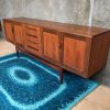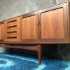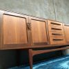 A mid century G Plan long Fresco teak long sideboard in great vintage condition with the normal faded to a nice blond colour look. The restored price is for those who wish a newly Danish oiled look which is a little darker finish and looks the same as the day it was first made.