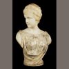 An early 20th century marble bust of a girl looking to dexter and wearing a turban, her dress carved in grey veined marble and carved to resemble embroidery around the collar, signed to the reverse Pugi.