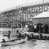 Rare Jarrah extension dining table 10′ x 4′ and 8 chairs from reclaimed timber from the Fremantle bridge demolished in 1909