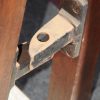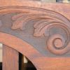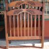 An Australiana king single bed constructed from Black wood. The head and foot are slatted with square sectioned posts each terminating with a cap. The top rails are arched and have scrolling carved opposing acanthus leaf design. We have the side rails, the restored price includes slats. Size: – 148cm high at the head and 127cm at the foot x 122cm wide.
