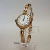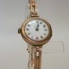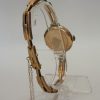 Ladies Swiss 9ct gold wrist watch with expandable links and safety chain.
