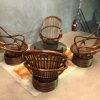 Mid Century Cane Swivel Arm Chairs