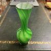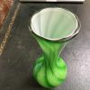 A Mid century Green and white overlay glass bud vase