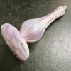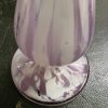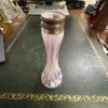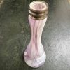 Pink and white Splatter glass vase with plated rim