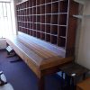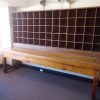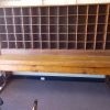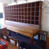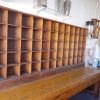 A postal mail sorting table from the Prahran Post Office in Melbourne. The top section with pigeonholes is 3010mm long x 1225 high x 260 deep