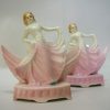A pair of ceramic dancing lady serviette holders