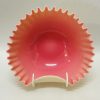 Victorian peach and ivory overlay glass shell bowl with frilled edge.