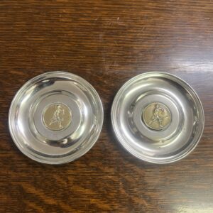 A pair of tennis trophy pin dishes