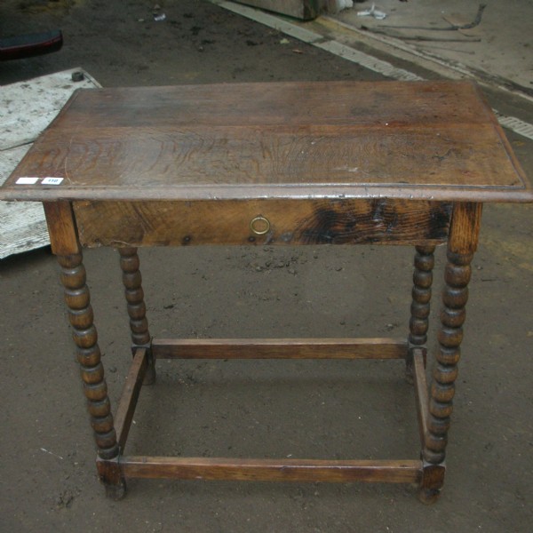 17th century oak low boy the rectangular top over single drawer and bobbin turned legs.