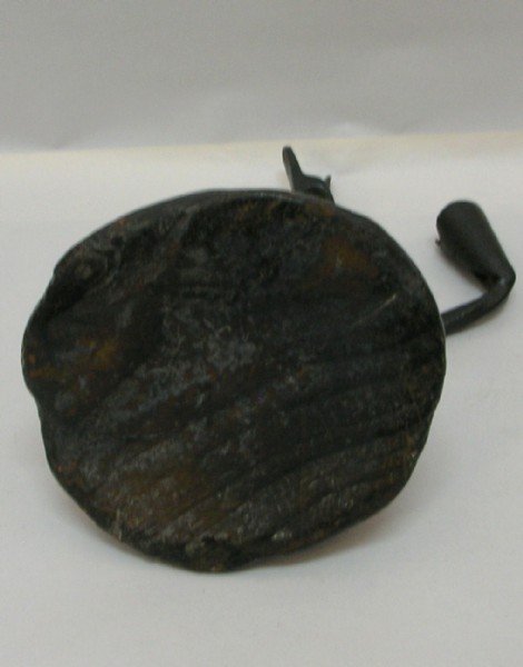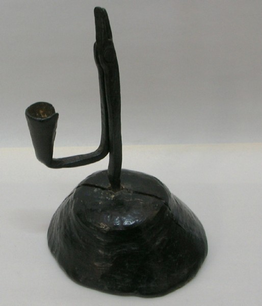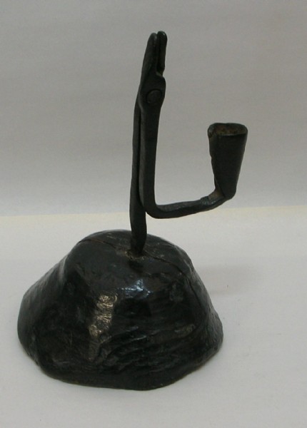 18th century Elm and wrought iron table Rushnip. The hand forged conical candle socket and rush jaws supported by a well patinated Elm base.