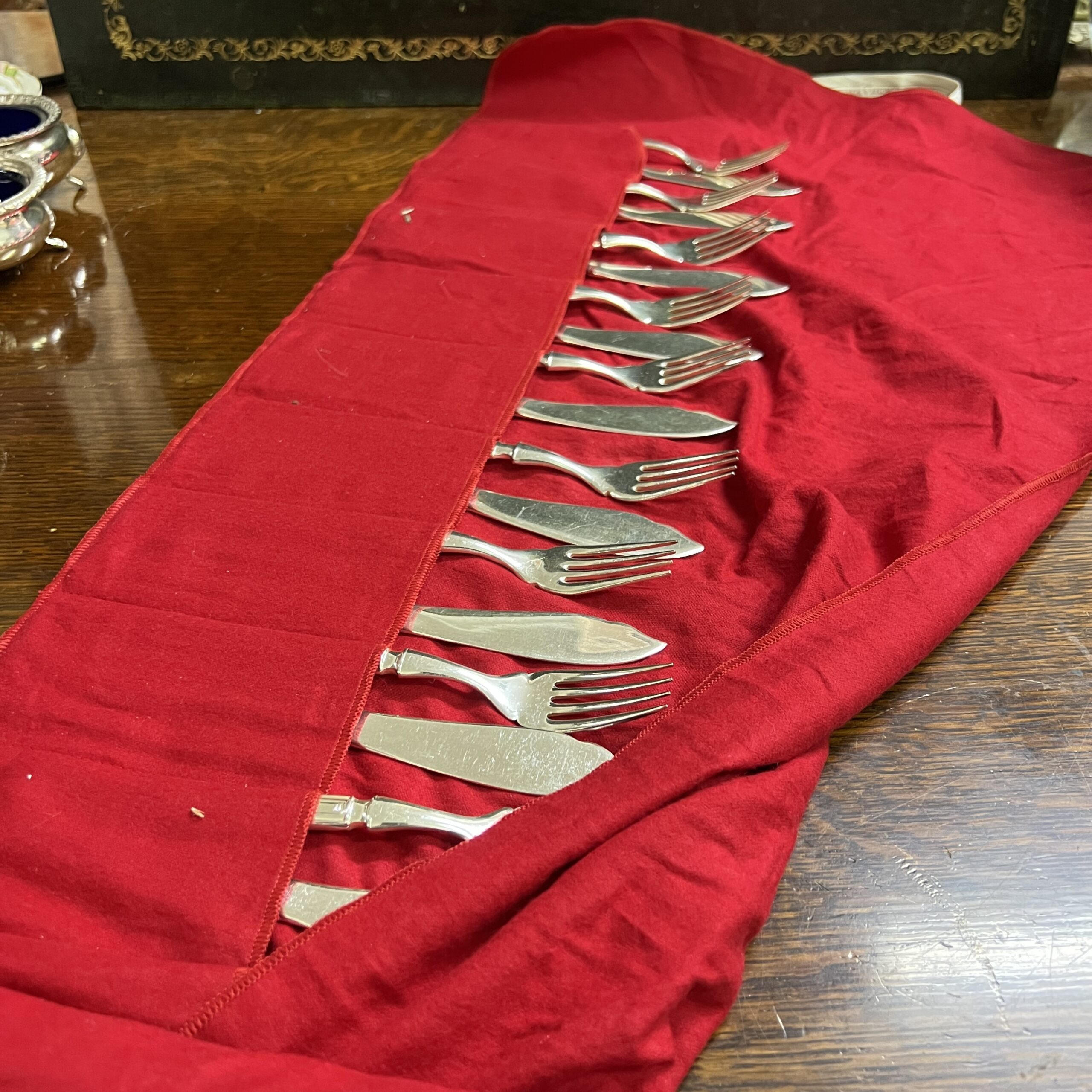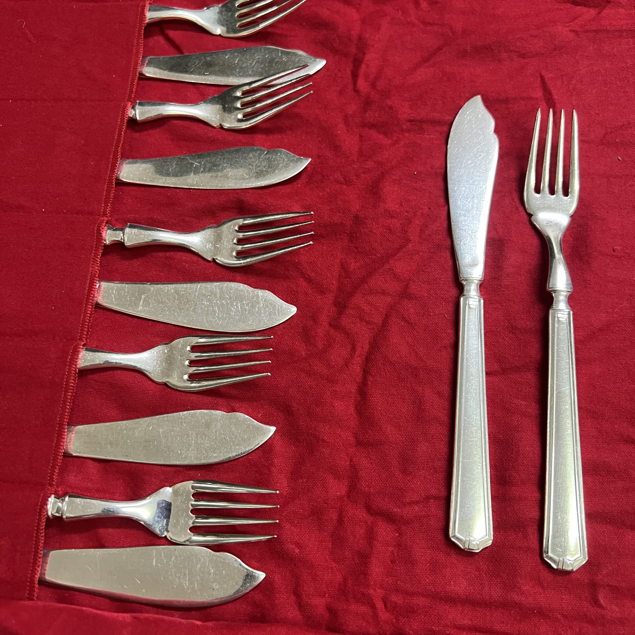 A 12 setting silver plated Grovsner Delphic fish cutlery set