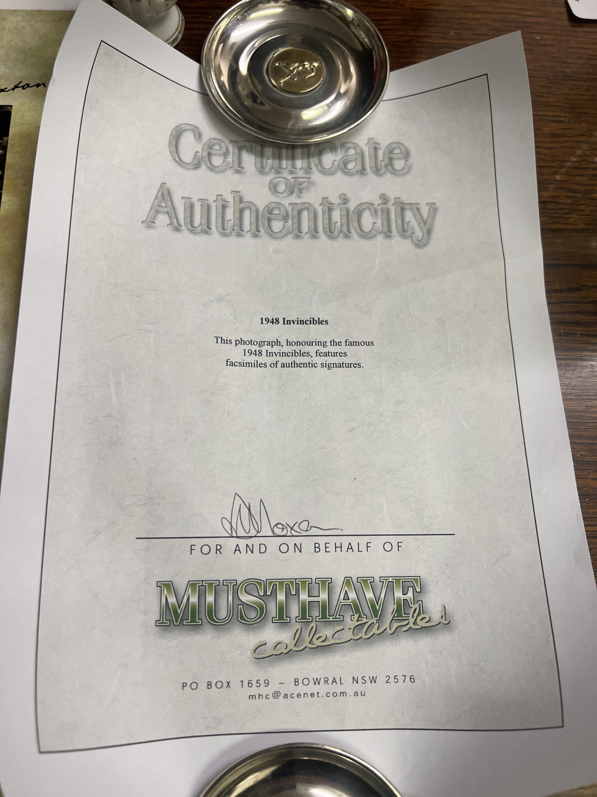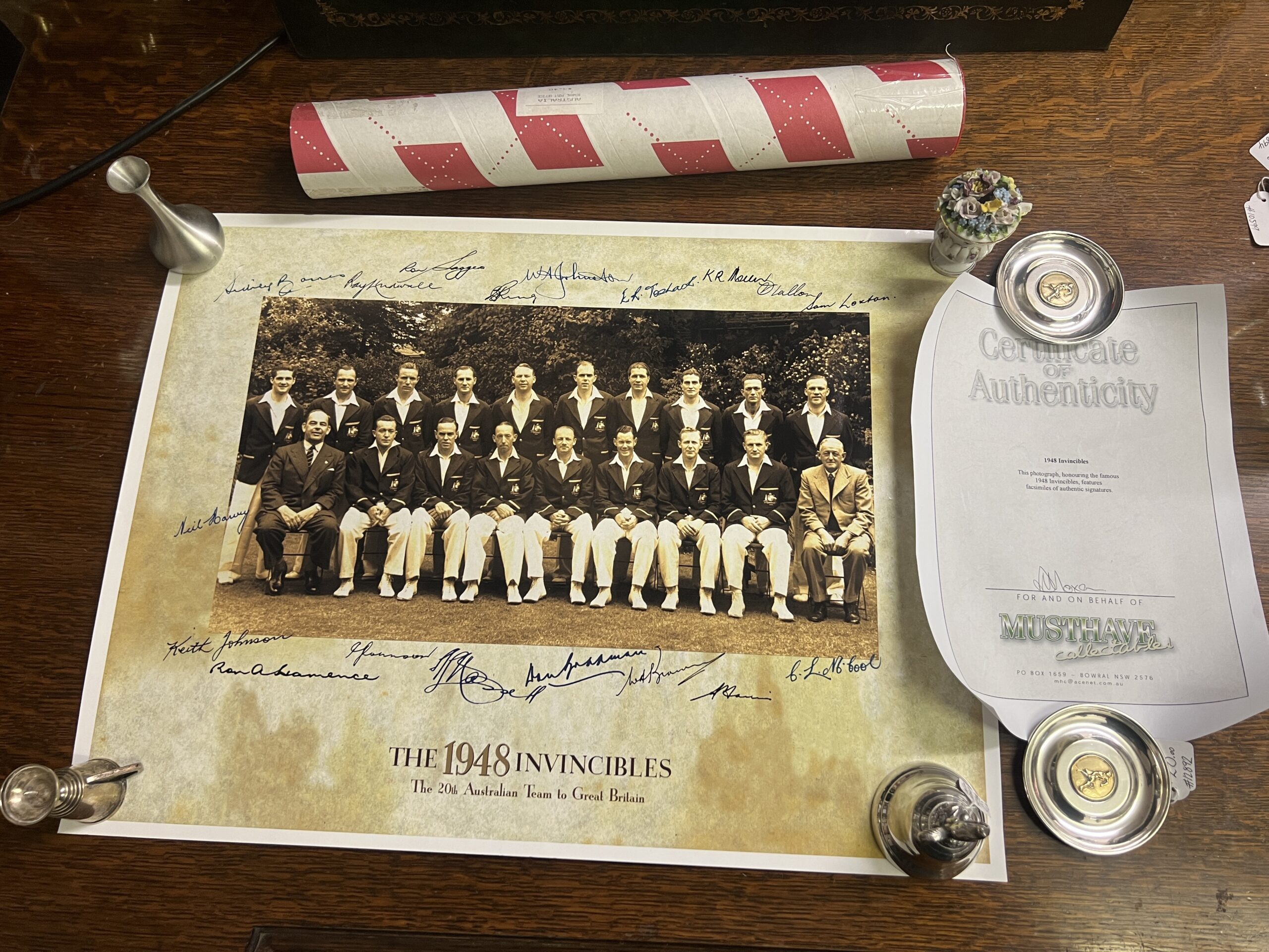 A 1948 Invincible’s poster features a photo with facsimiles of authentic signatures.