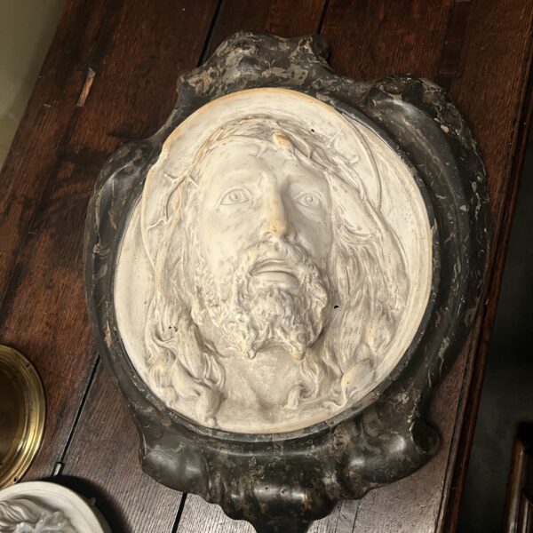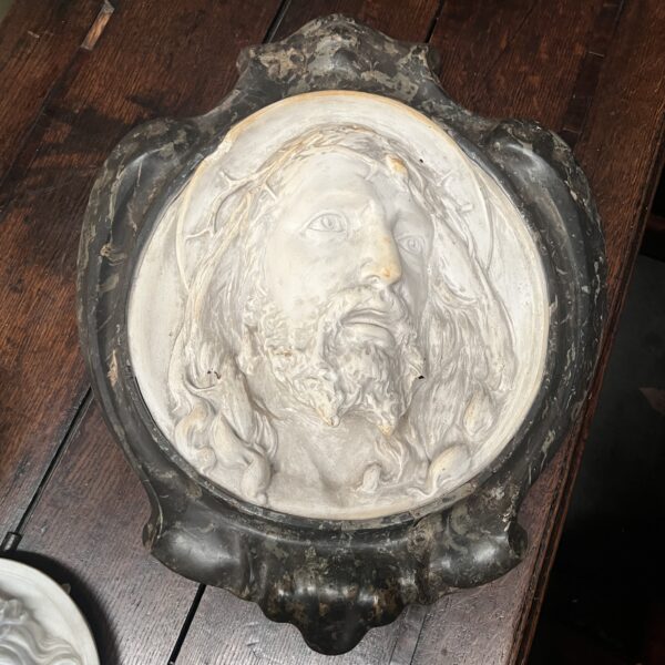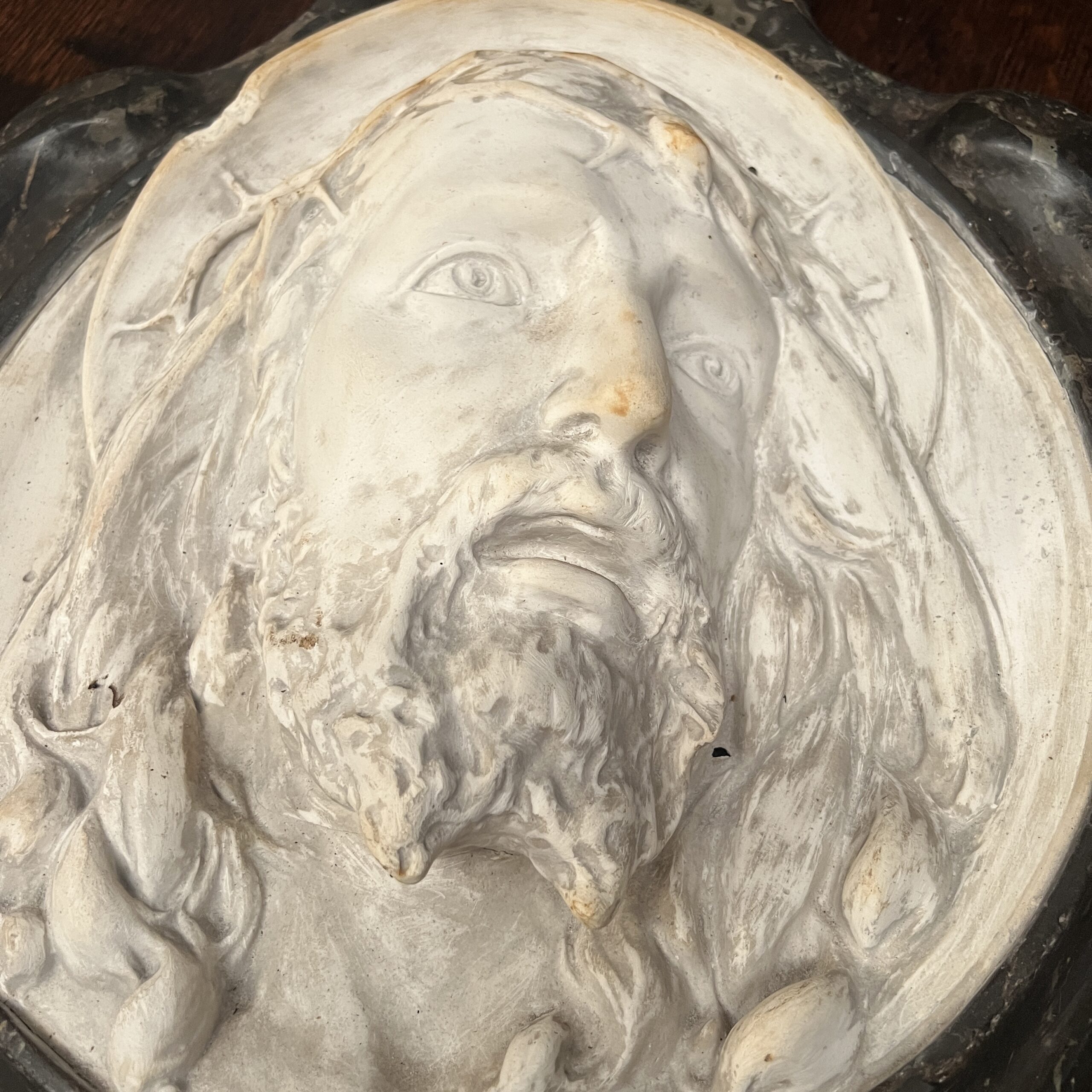 A 19th Century Austrian religious chalk ware wall hanging/plaque of Jesus reputed to be from an Austrian nuns convent.