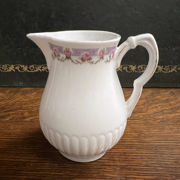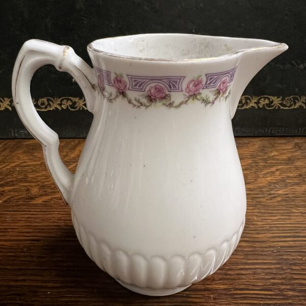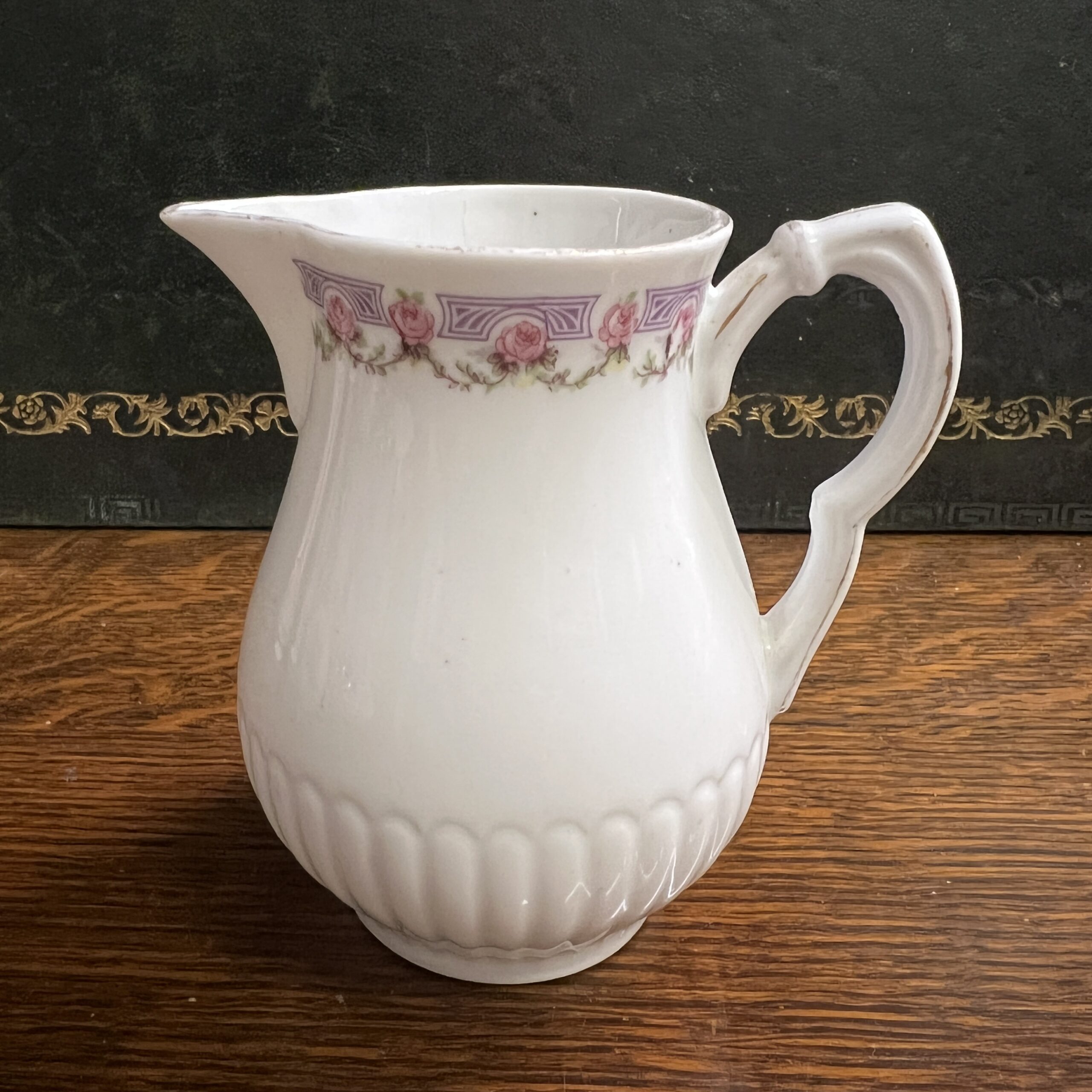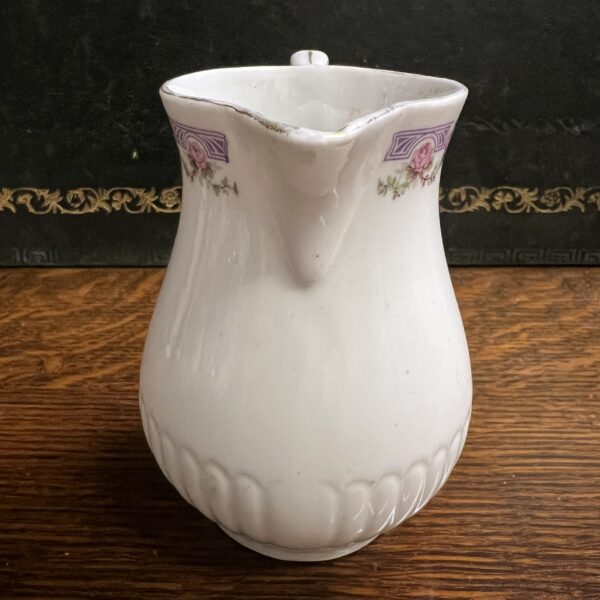 A 19th century ceramic milk jug with a floral boarder 110mm