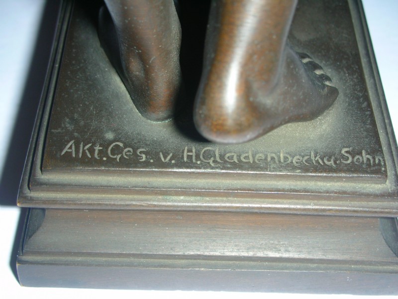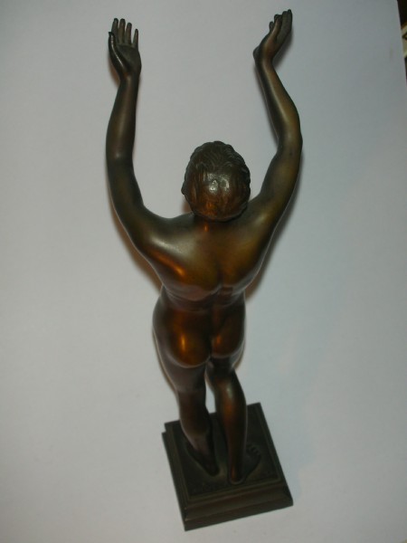 A well modeled figure of a nude man with his arms out stretched signed Akt.Ges.v.H.Gladenbecky.sohn with reference to Preis.