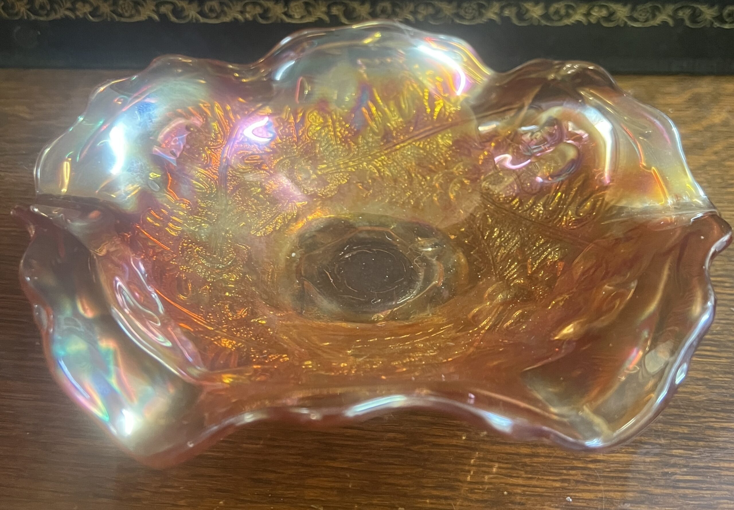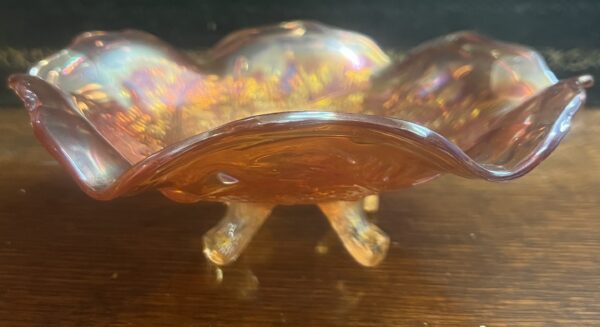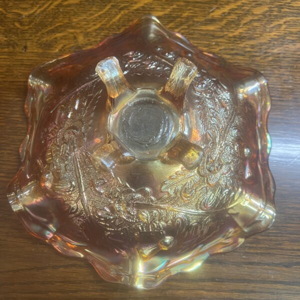 A Marigold footed carnival glass bowl thistle pattern to underside 220 x 80
