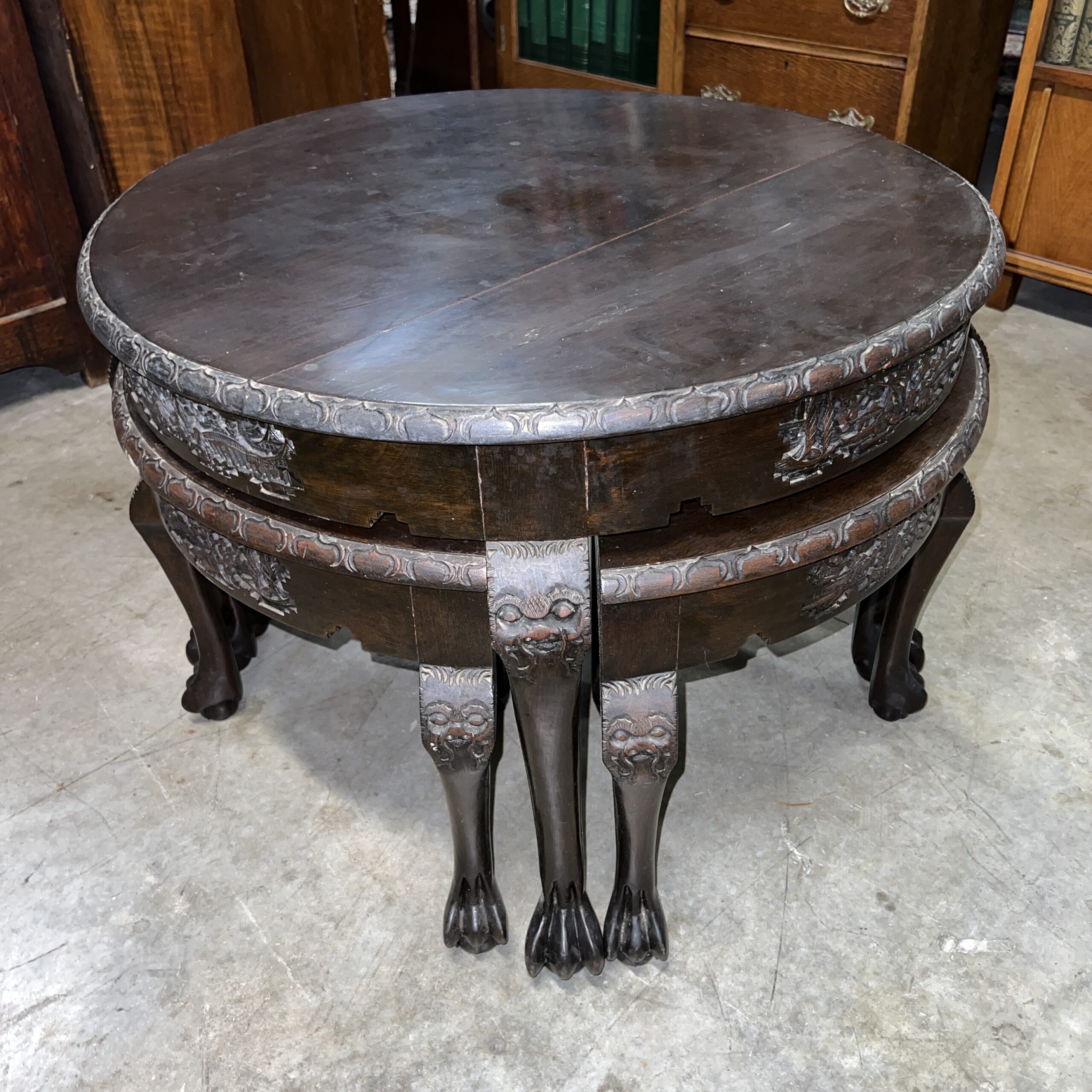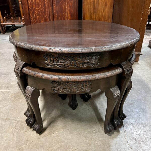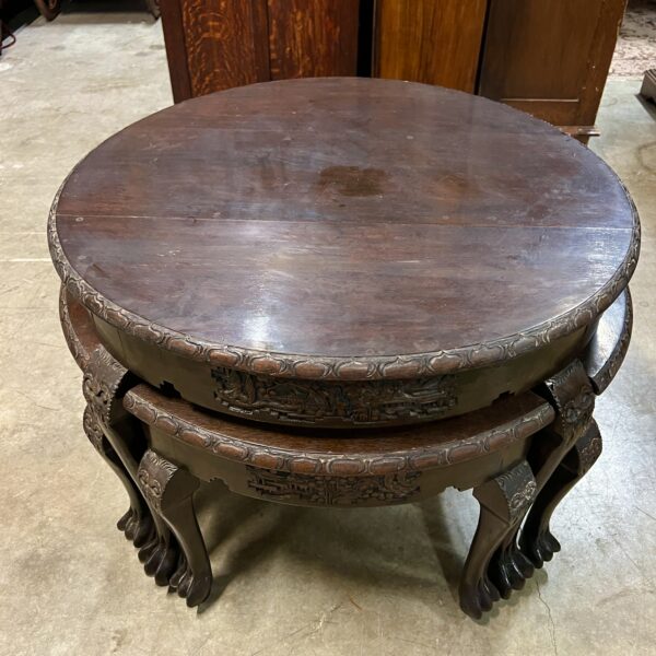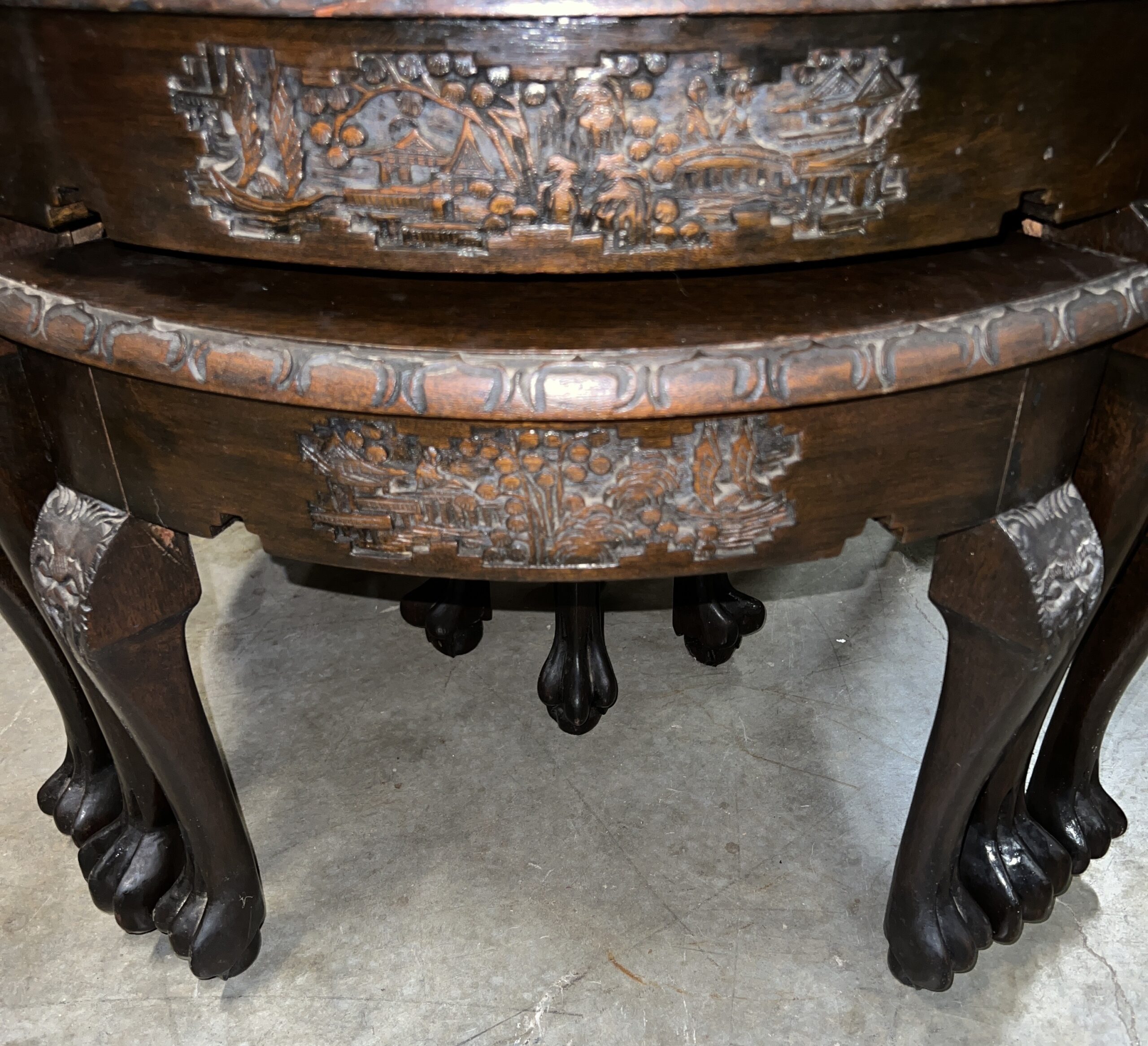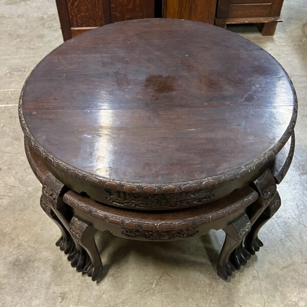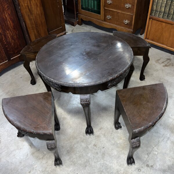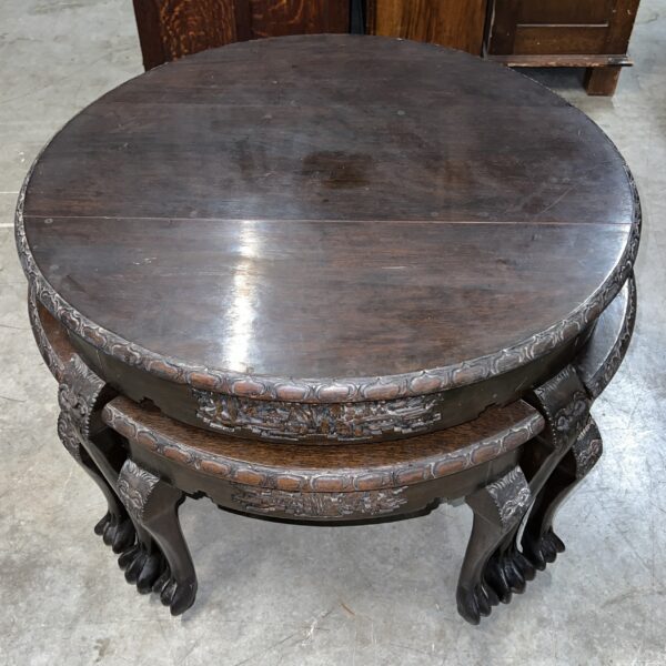 A Chinese carved coffee/tea table with four stools/ small tables $1,295 restored