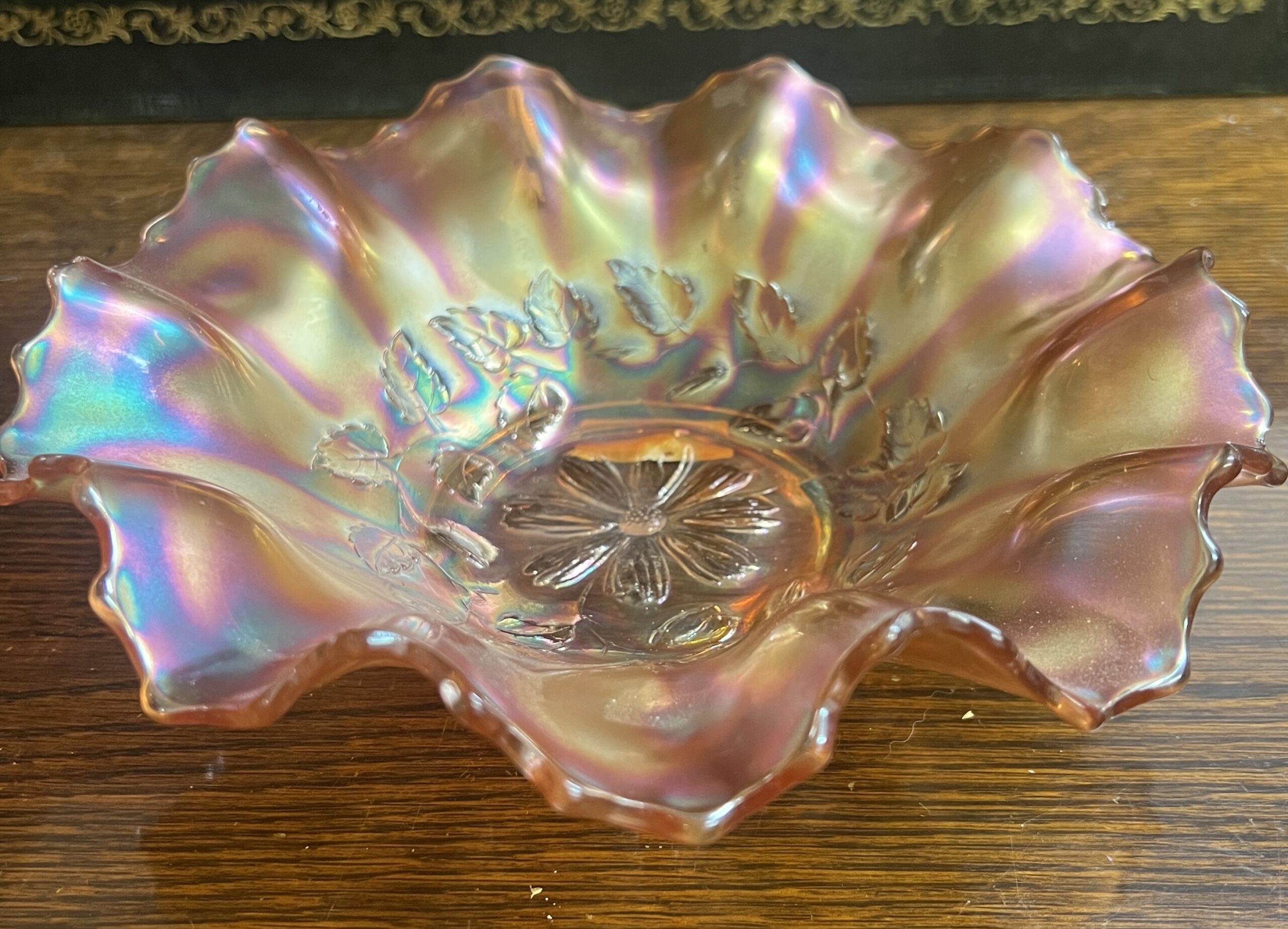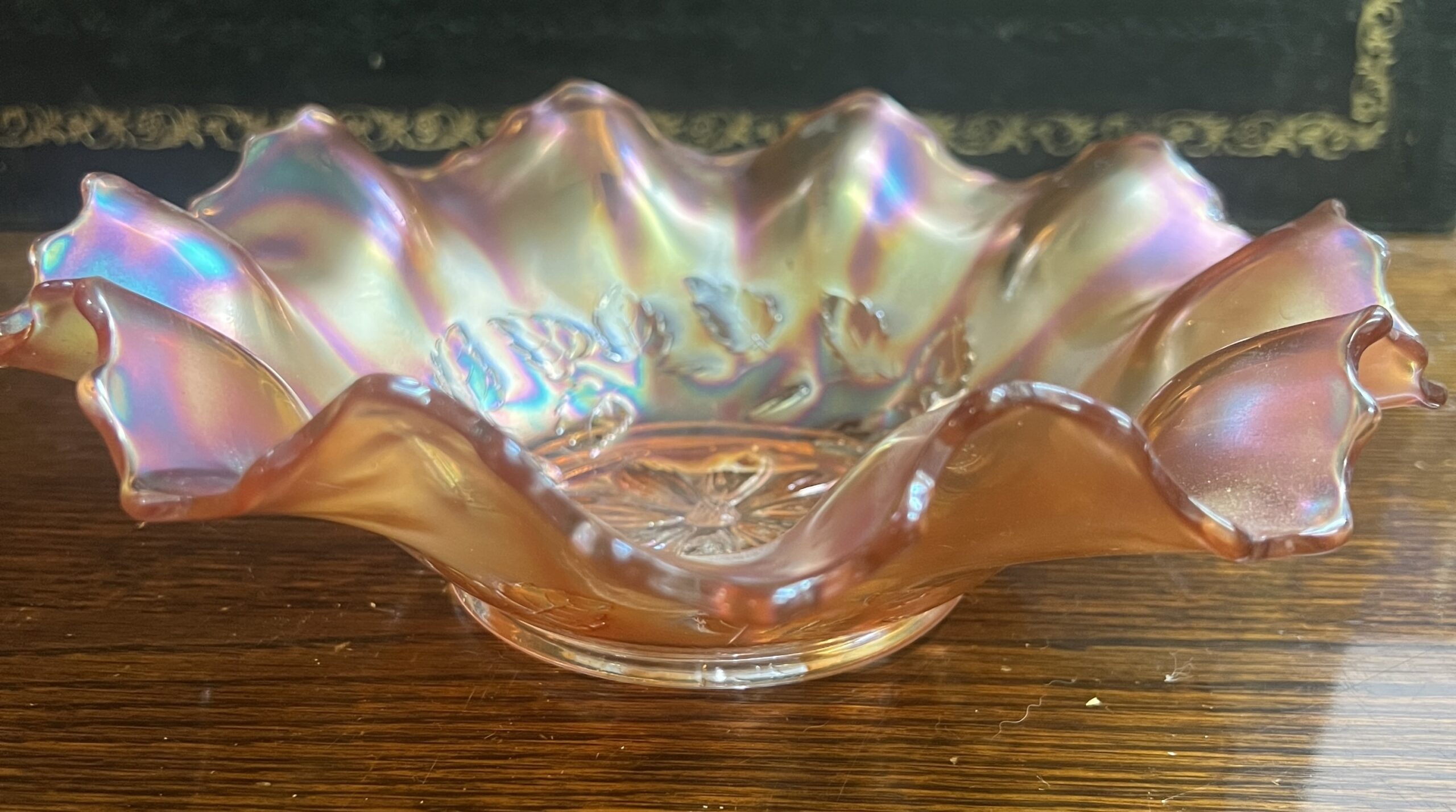 A Fenton Cosmos variant marigold carnival glass bowl 230 x 75