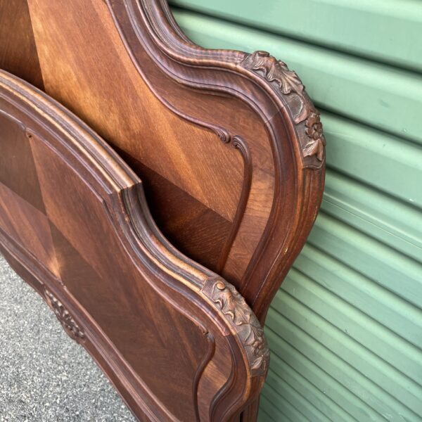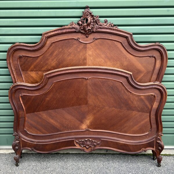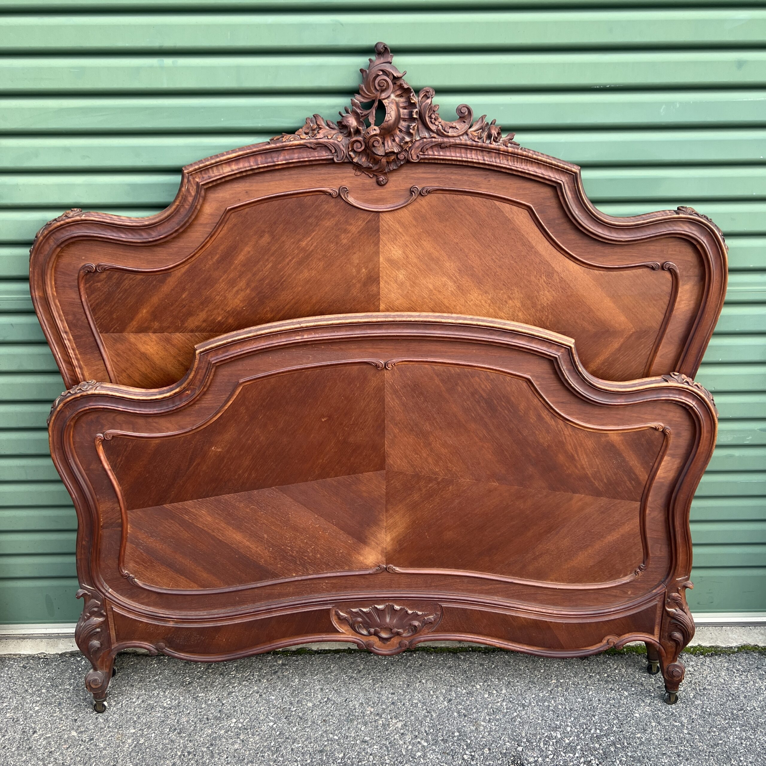 A 20th century French walnut Rococo carved and shaped double bed complete with rails