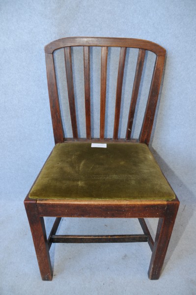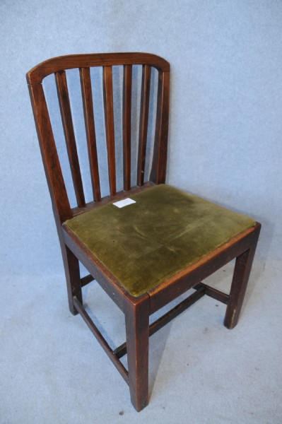 A George III ash and elm dining chair with slat back and square legs. Restoration includes standard reupholstery.