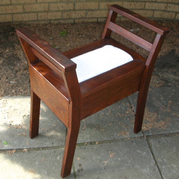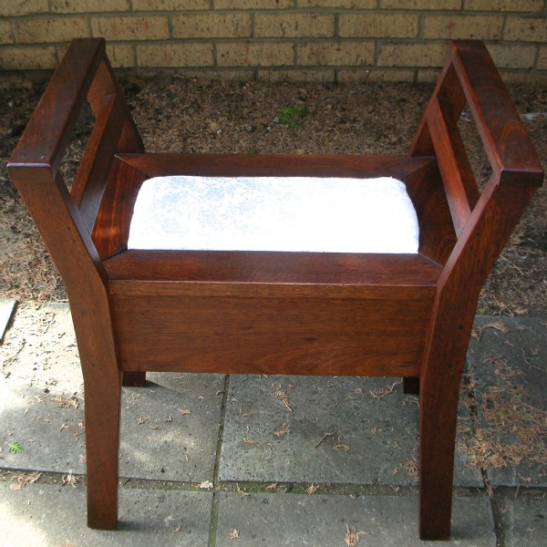 A Jarrah piano stool with upholstered seat out swept handles and legs. Structurally sound and in very good original condition.