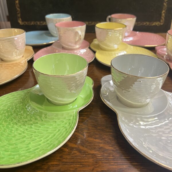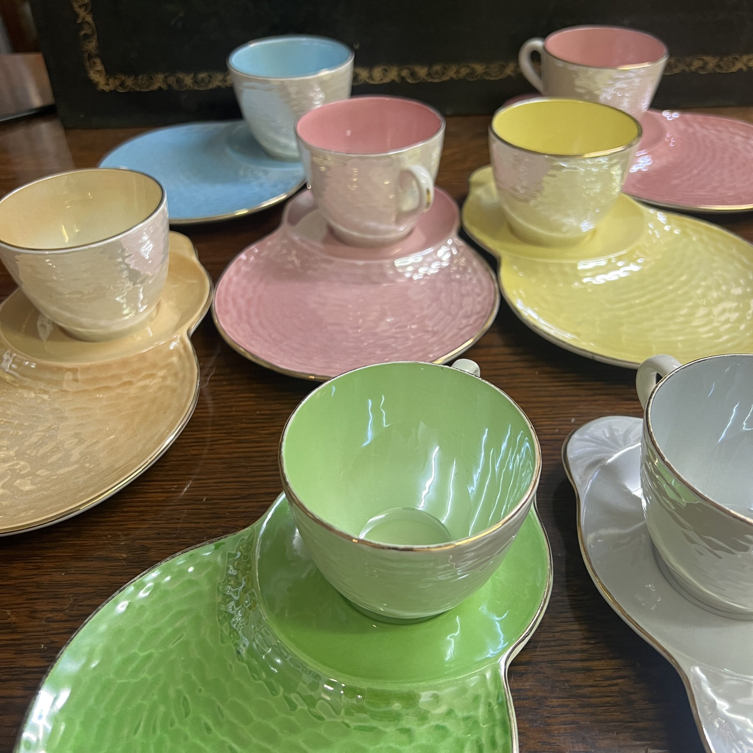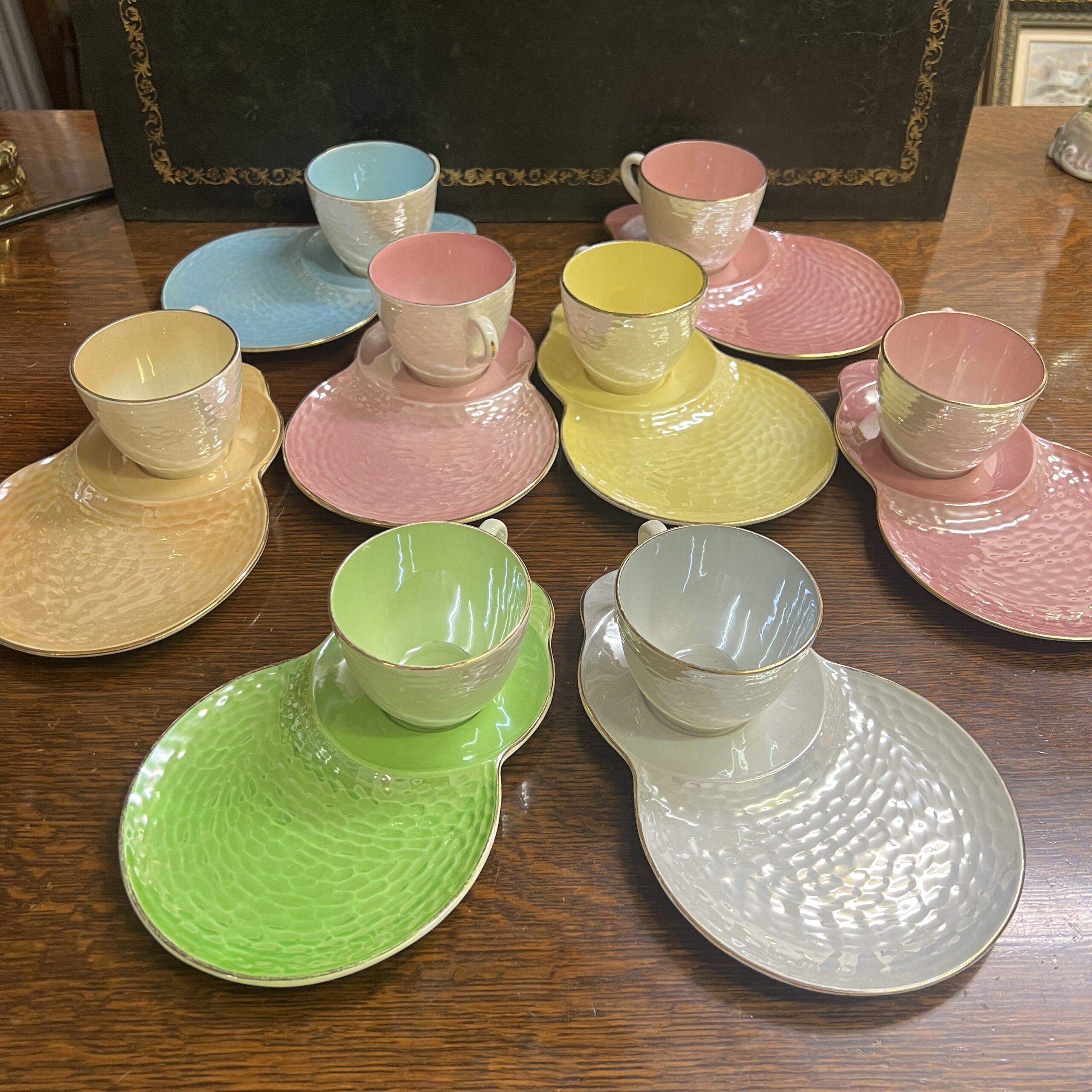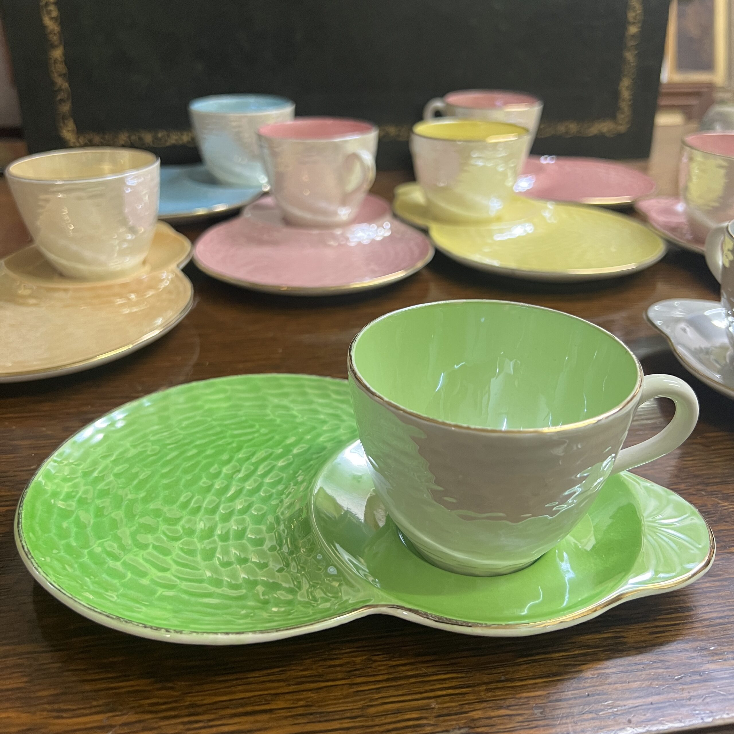 A Maling 16 piece tennis tea set comprising 8 cups and saucers all in lustre pastel colours