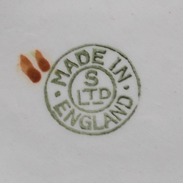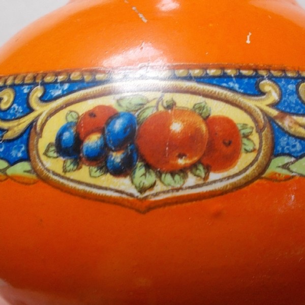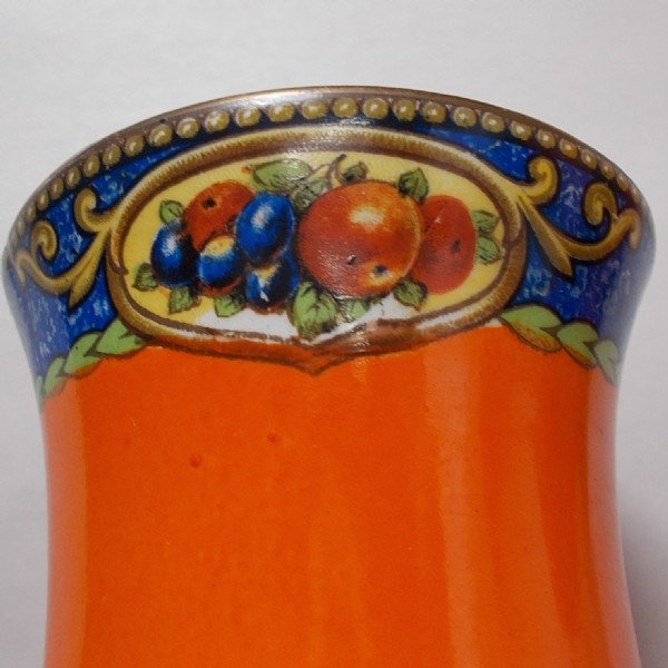 A pair of English vases marked “S Ltd” orange with fruit decoration
