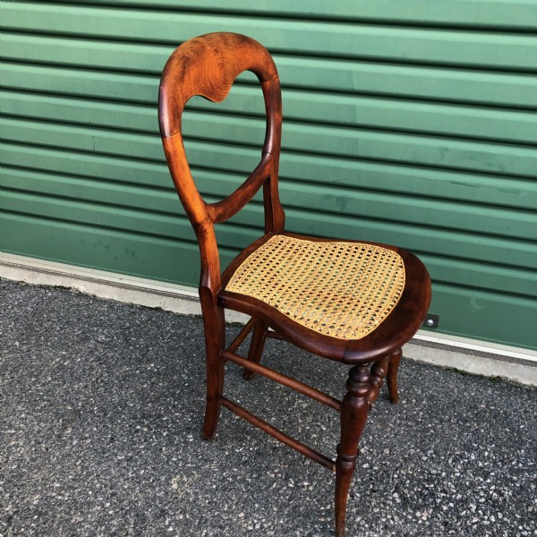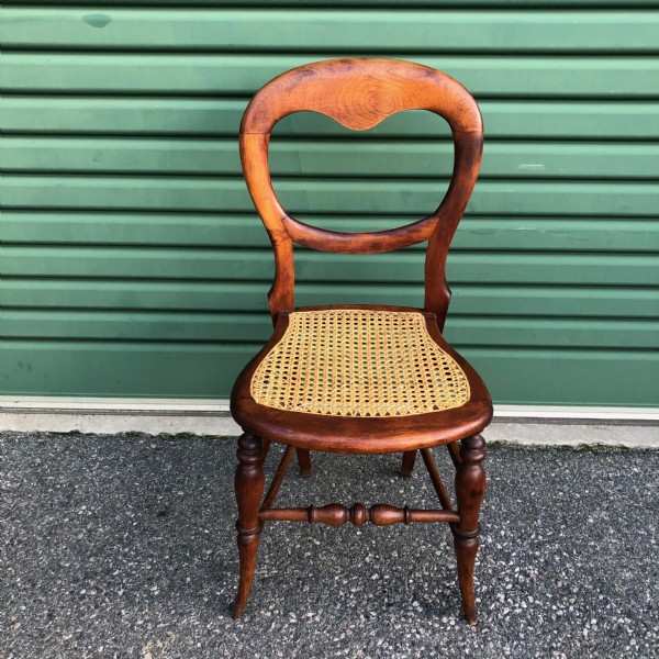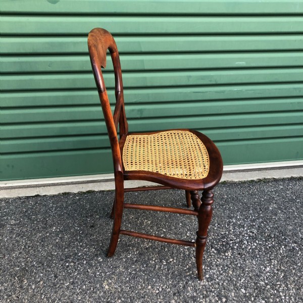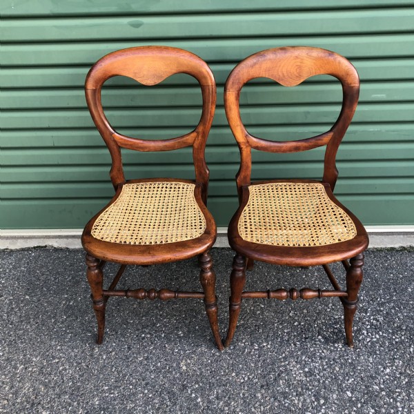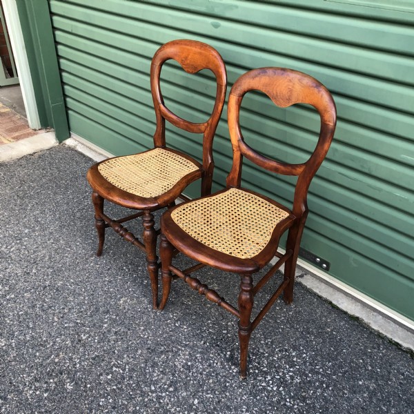 A Pair of late Victorian walnut Salon chairs with rattan seats turned legs and front stretcher
