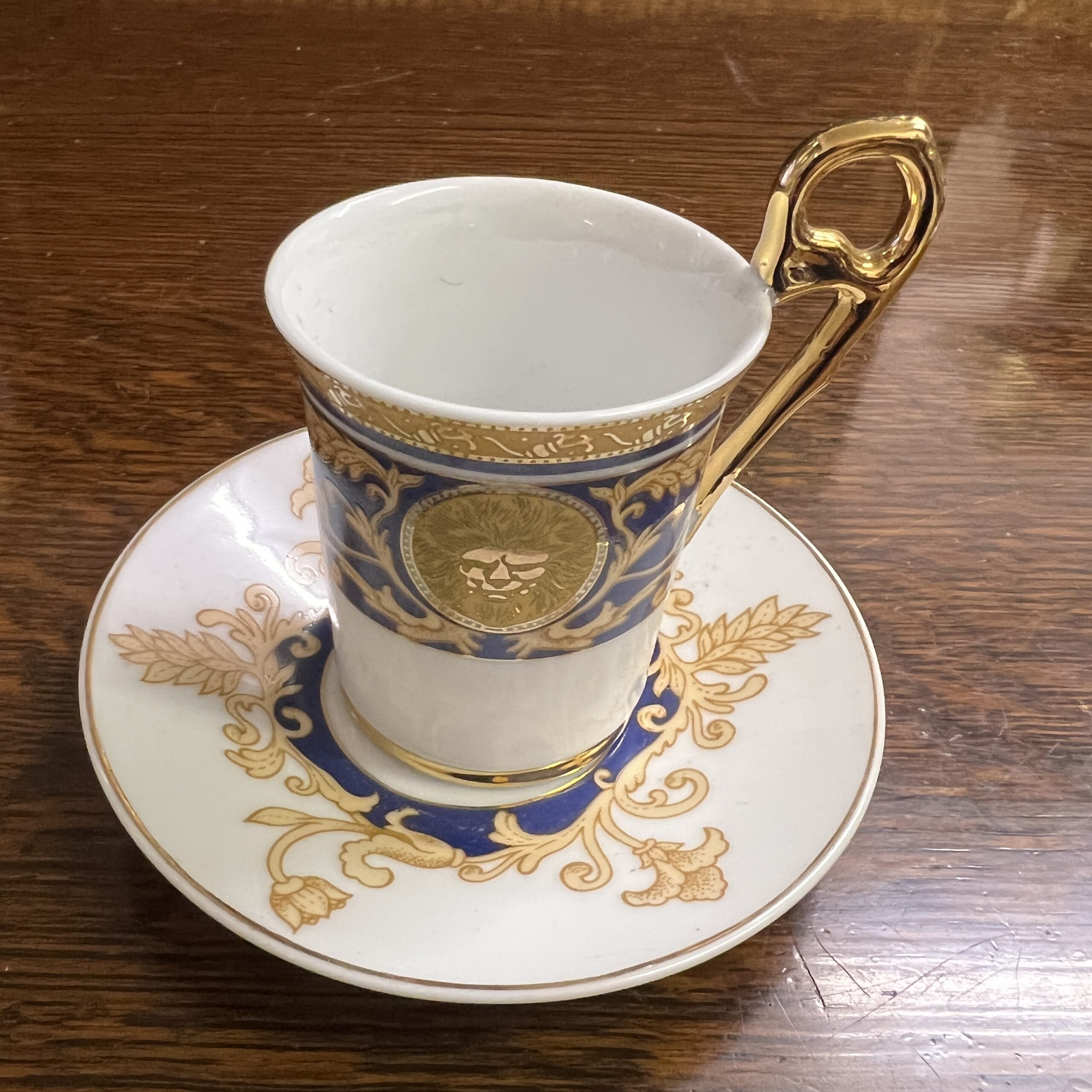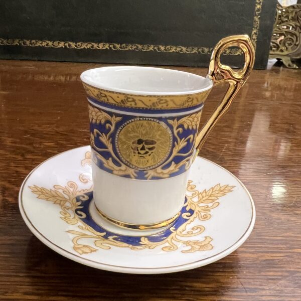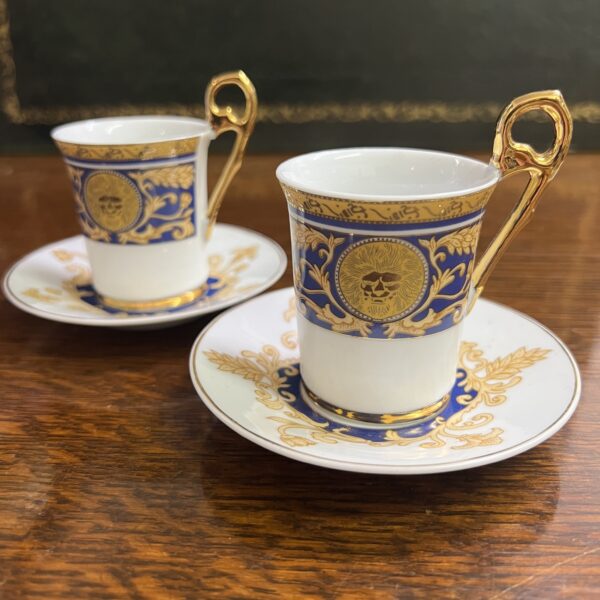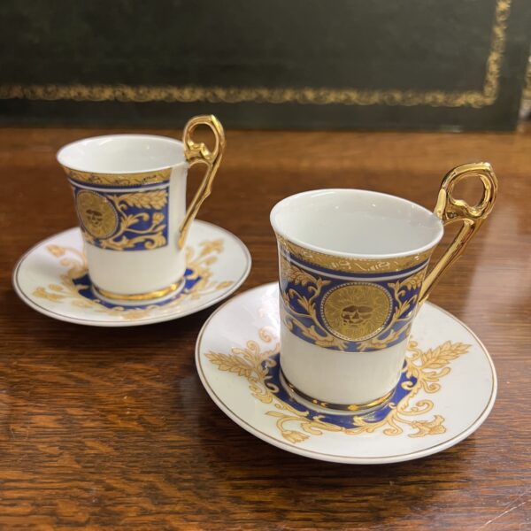 A pair of fine porcelain coffee cups and saucers with 24ct gold collection