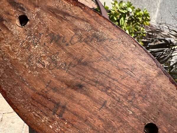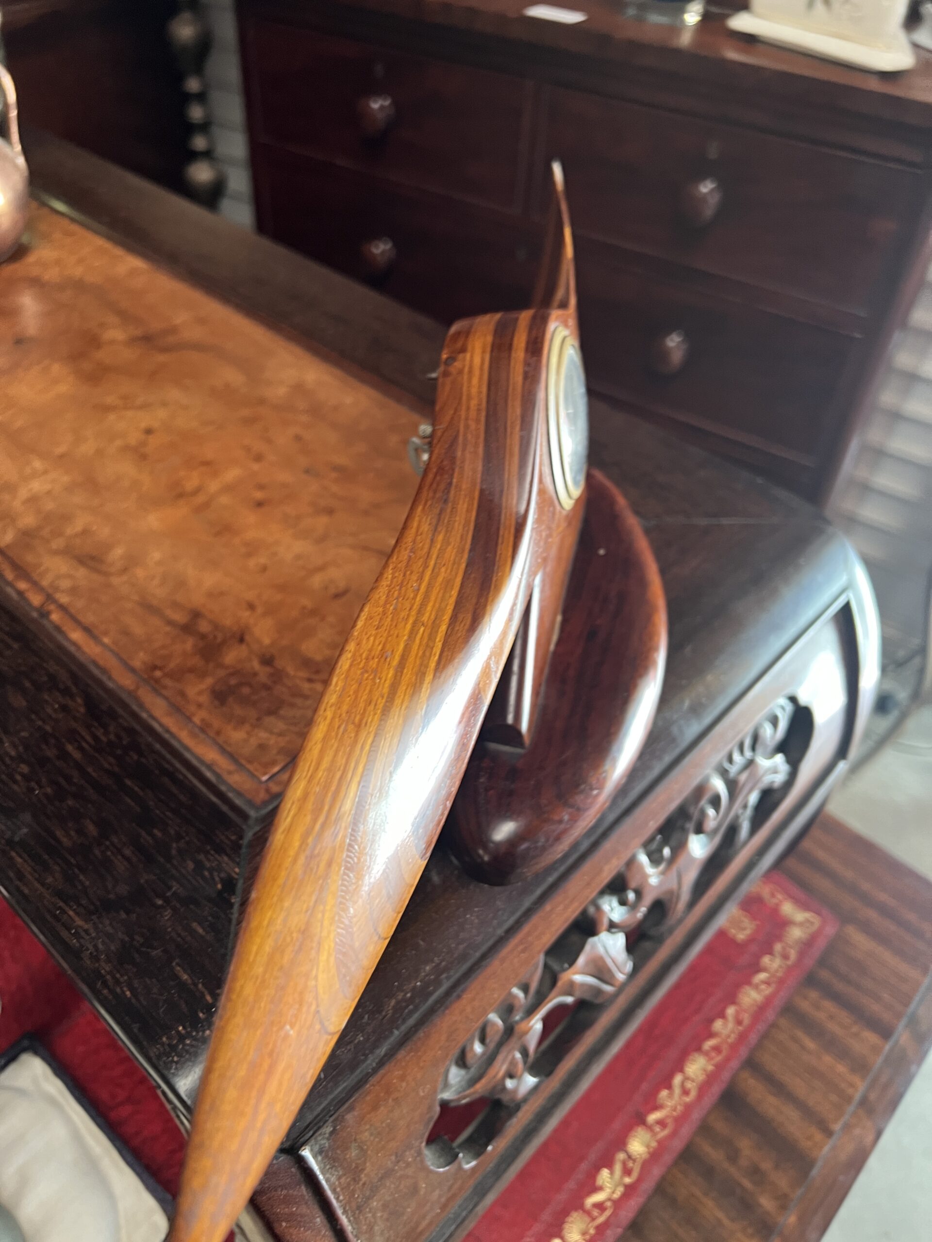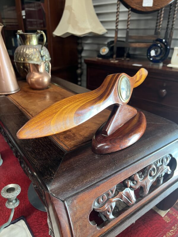 A laminated propeller clock from Australian timbers with mechanical movement in good working order, signed W. M. Austin Esplanade South Perth WA 530 x 150