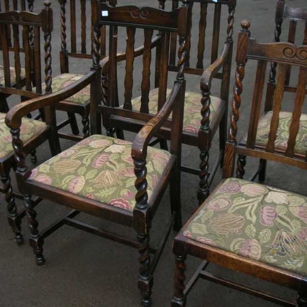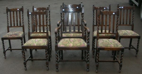 A set of eight Jacobean style oak dining chairs.