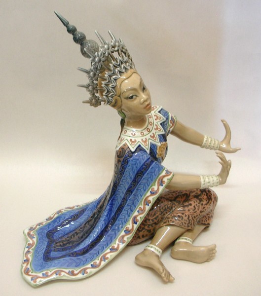 A Splendid Royal Copenhagen Dahl-Jensen “Thai Dancer” hand crafted and painted figurine, with original catalogue.