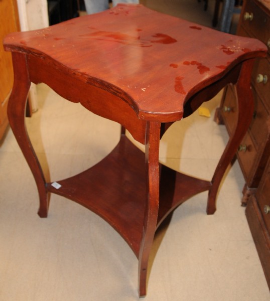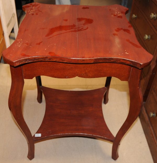 A jarrah occasional table with shaped top, rails, legs and tier.