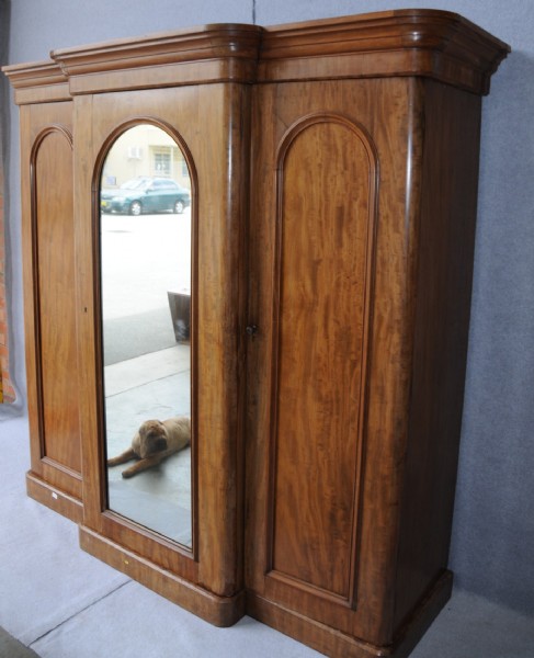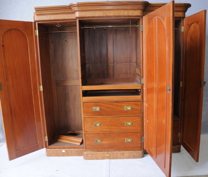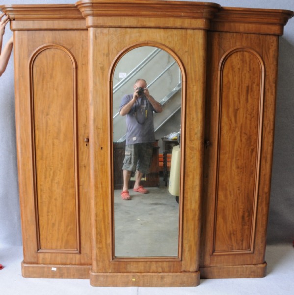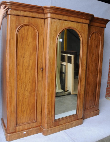 A Victorian flame mahogany breakfront wardrobe.